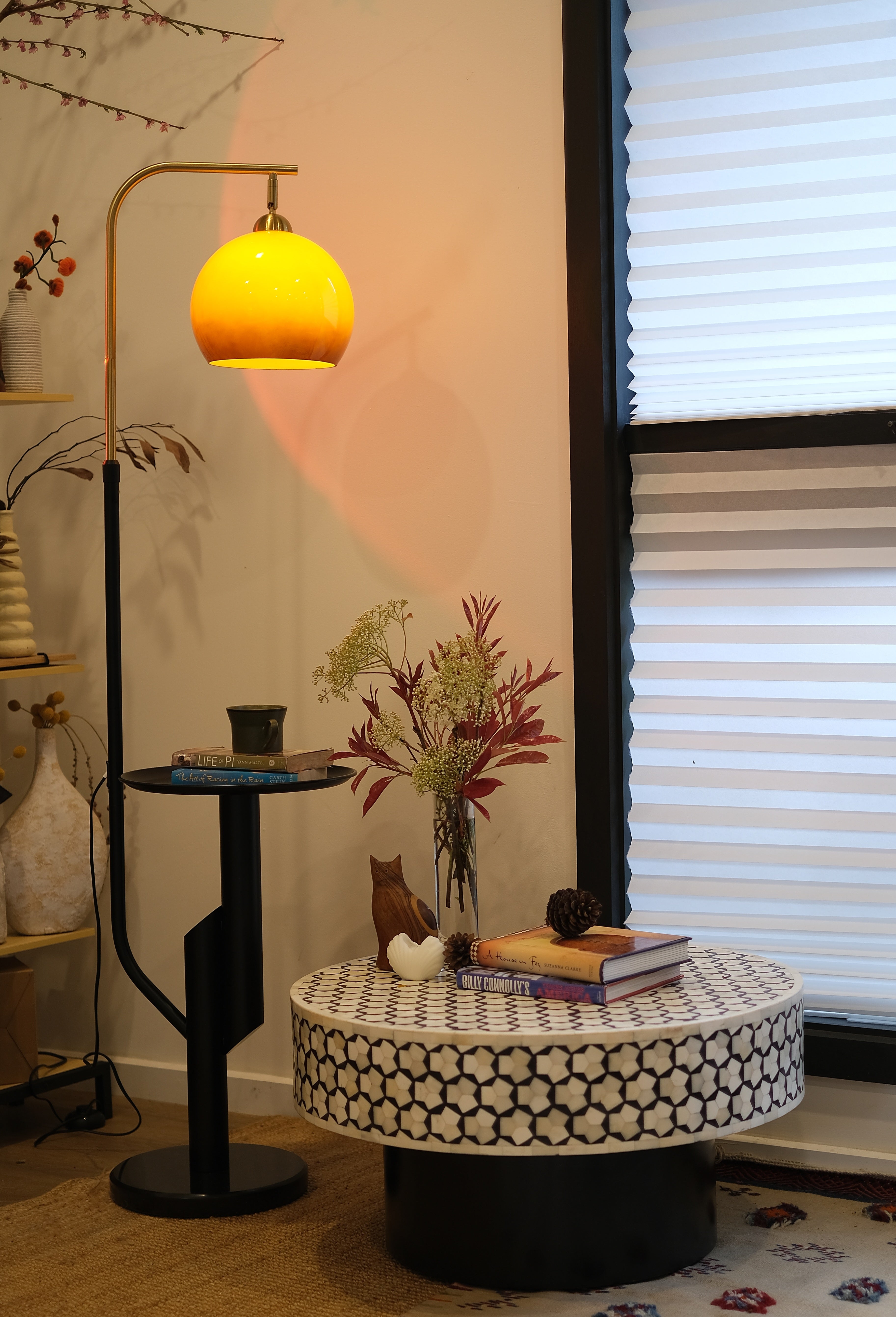 Carla Arc Floor Lamp with Side Table - 360° Adjustable Floor Lamp