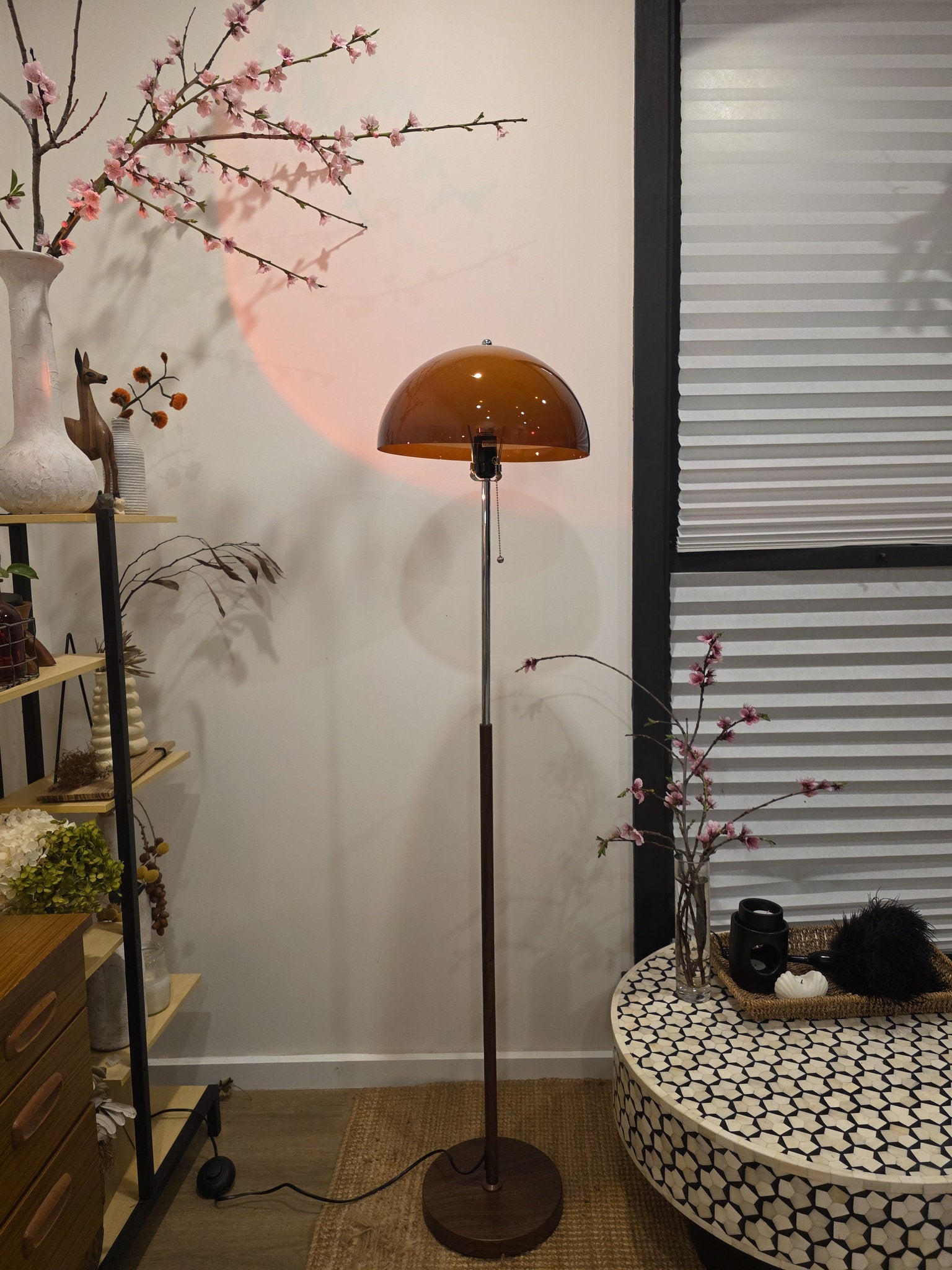Retro Mushroom Dome Shade,Glossy orange finish creates a warm, inviting glow